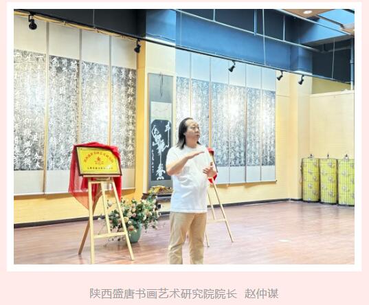随后,陕西盛唐书画艺术研究院院长赵仲谋发表主旨讲话:“非遗文化,是中华民族数千年历史长河中沉淀下来的璀璨明珠,是祖先智慧的结晶,更是连接过去、现在与未来的精神纽带。每一项非遗技艺、每一种非遗文化背后,都蕴含着独特的民族精神和文化基因,它代表着我们民族的身份认同和文化归属。在全球化的浪潮下,非遗文化面临着诸多挑战,部分非遗项目甚至濒临失传,这无疑是我们整个民族的巨大损失。