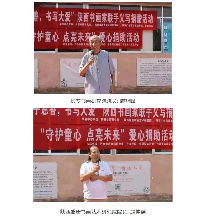 陕西长安书画研究院院长康智峰和陕西盛唐书画艺术研究院院长赵仲谋也分别在活动中发言,表达了对公益活动的支持和对残障儿童的关怀。