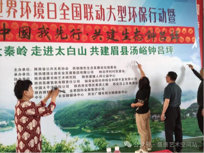 出席此次活动的嘉宾有陕西公共关系协会终身荣誉会长权峪,陕西省乡村振兴局副研究员、三农专家张建奎,西安工业大学教授张文勇,陕西盛唐书画艺术研究院院长赵仲谋,陕西华育祖庭非物质文化传播有限公司王丙海,爱暖人间公益大使、“网上雷锋”陈丽娟,钟吕坪村党支部书记雷恩宽,陕西建源云鼎实业发展有限公司董事长孙源等。此外,还有近百名绿色环保爱心艺术家、徐凤琴,杨成有,汪顺峰、韩武侠,王丙海以及企业家、医药代表、环保公益文化大使等齐聚一堂,共同为环保事业发声。